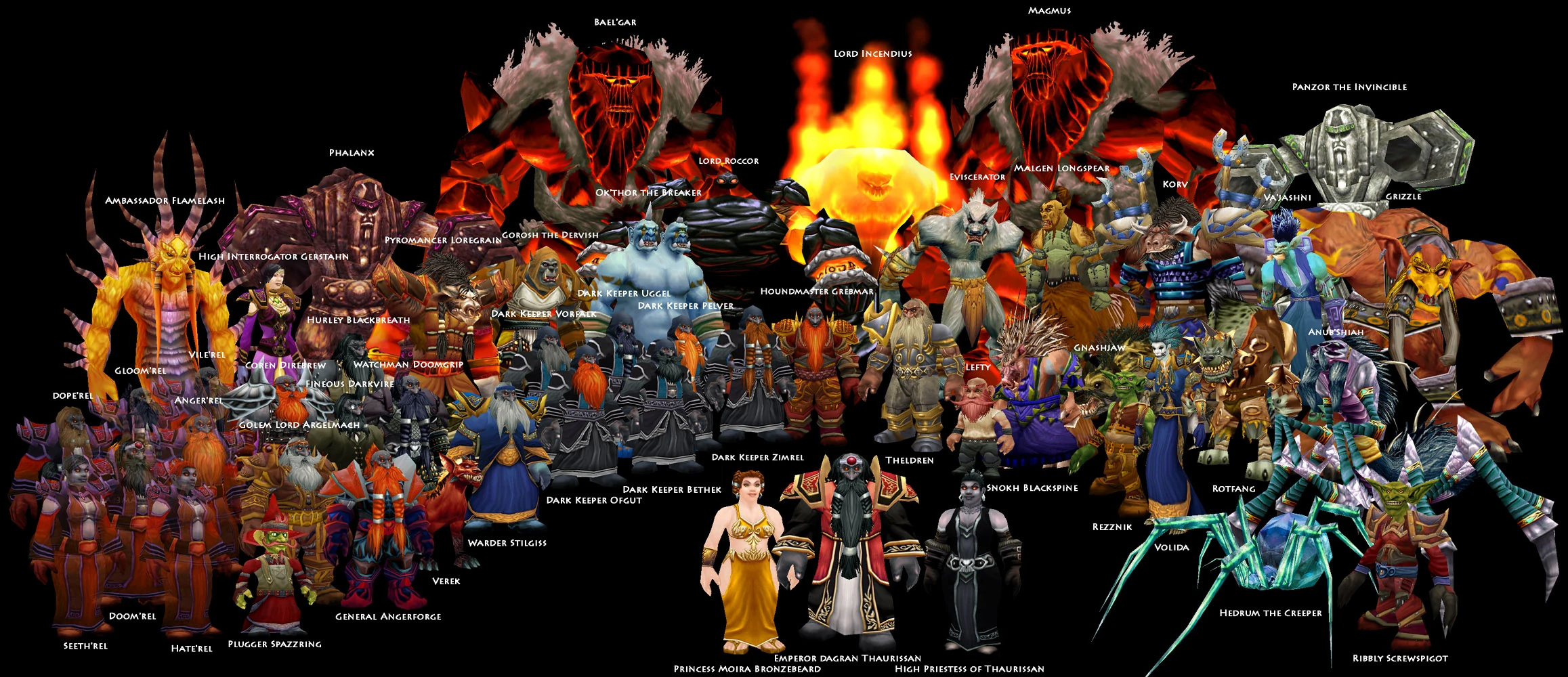 Blackrock Depths (aka Blackrock Deeps, BRD) is the deepest part of Blackrock Mountain, ruled by the Dark Iron dwarves who are led by Emperor Dagran Thaurissan. Several minions of the Firelord Ragnaros also make their home in these lava-lined depths. BRD is currently the largest 5-man instance in the game, and is likely to remain so, making it a true wonder of the World of Warcraft. The average time to complete the entire instance is 4–6 hours due to its complexity: a large amount of mobs and bosses, several scripts, and many quests. The enemy level range is 48-56, and the minimum level requirement to enter is level 42.